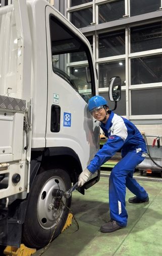 (写真はホイールボルトを規定トルクで締付する作業です)